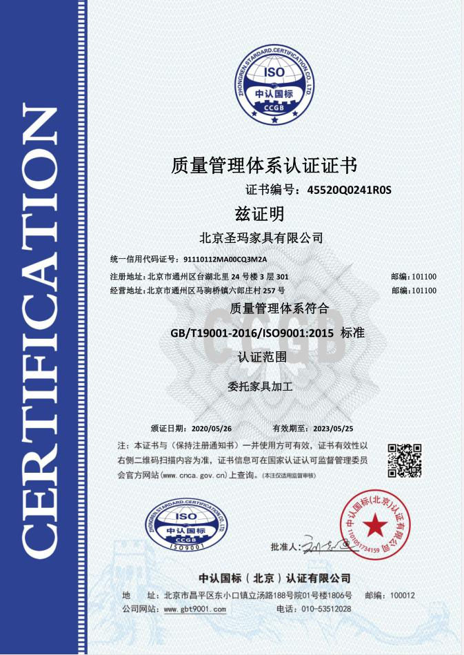 北京圣瑪家具有限公司是以設(shè)計研發(fā)、生產(chǎn)、銷售、服務(wù)為一體的專業(yè)化辦公家具制 造企業(yè);主要經(jīng)營辦公家具、校園家具、實驗室家具、酒店套房、全屋定制類等家具。 公司成立于 2017 年,生產(chǎn)基地位于天津市蘆臺經(jīng)濟開發(fā)區(qū)華澳盛世家具有限公司院 內(nèi),占地面積約 10000 平米,擁有員工 100 人左右,其中高級技術(shù)人員達 15%以上。 公司采用了南興、先達系列等先進生產(chǎn)設(shè)備,建立專業(yè)流水線,具備先進的生產(chǎn)及加 工能力。公司設(shè)有專業(yè)的產(chǎn)品設(shè)計部、運營部、質(zhì)檢部等,提供專業(yè)的 CAD 平面圖、立面 圖級效果設(shè)計圖紙。 使用優(yōu)質(zhì)的進口原材料及配件;嚴把進貨渠道,所用材料符合國家環(huán)保標準要求。款 式上依據(jù)人體工程學(xué)原理,追求多樣化的設(shè)計風(fēng)格。按照 “ISO900/ISO14001 族標準” 的 要求,嚴格控制每一個環(huán)節(jié)。 并本著“以質(zhì)量求發(fā)展,向管理要效益,顧客滿意為焦點,持續(xù)改進,共筑偉業(yè)”的 宗旨方